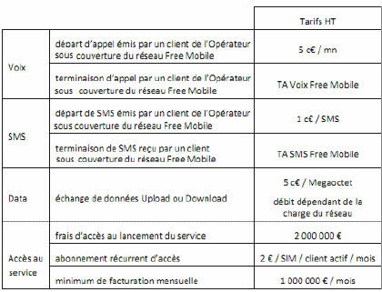 Comme sa licence l'y oblige (ainsi que les 3 autres opérateurs réseau) FREE propose une offre de gros pour les opérateurs virtuels souhaitant (on se demande bien qui) utiliser son "réseau" est ses offres.